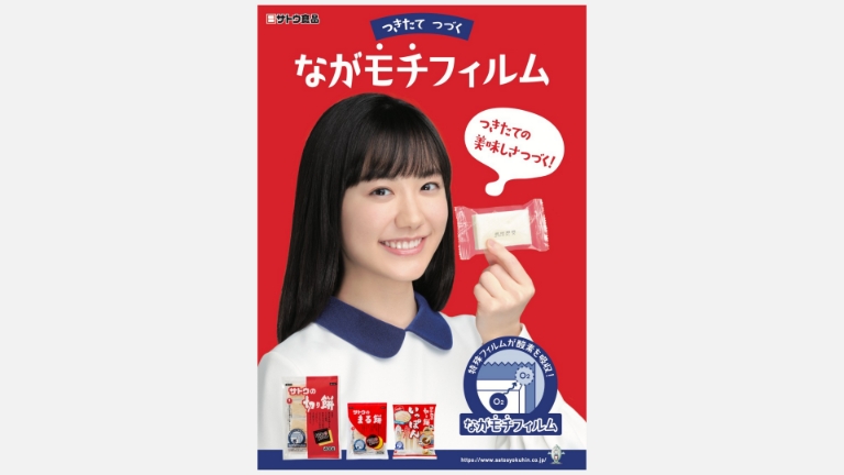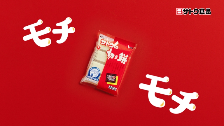 「ながモチフィルム」は、サトウの切り餅に使用される「酸素吸収機能」を持つ個包装フィルム。脱酸素剤を使わないから、餅の水分や美味しさが保てて、賞味期限が24ヶ月へと延長。目と耳に印象に残る、新TVCM、ラジオCM、グラフィックを制作。