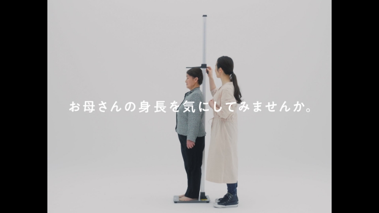 50歳以上女性の4人に1人が骨粗鬆症であり、自覚症状が出にくく身長低下が1つのサイン。これらに着目し「母の日」をきっかけに、骨に目を向けてもらう施策へ。母の日当日、読売新聞全国朝刊に掲載された全面広告と、動画を制作しました。