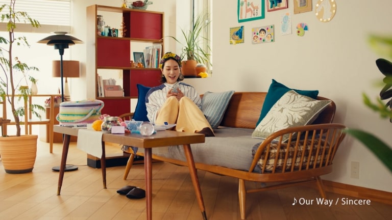 10周年の感謝の思いでクーポンがもらえる獲得特化型CM。各々のスマホから参加できてつながるささやかなお祭り感を表現。Sincereさんに書き下ろしを依頼し一緒にCM楽曲を制作。10周年のポップな多幸感と祝福感を演出しました。
