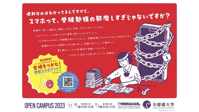夏に計画通り勉強が進んだ人も、そうじゃない人も、受験の天王山の夏が終わった9月に掲出した電車広告。合わせて、オープンキャンパスでも配布するスマホグッズを作りました。