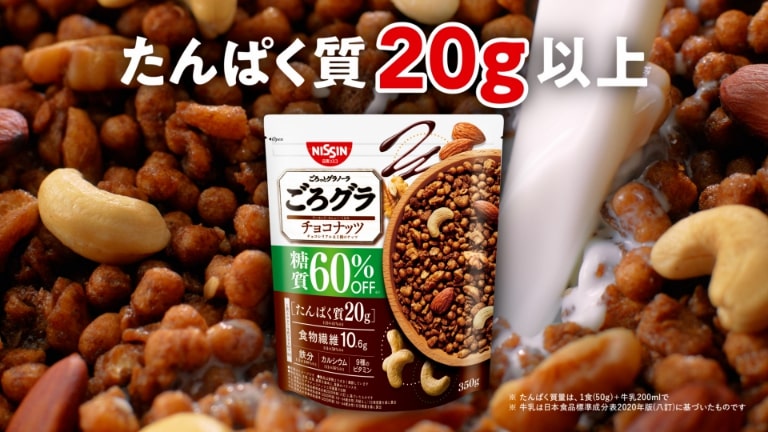 ごろグラ糖質オフシリーズのパッケージがリニューアル&50g増量した時のクリエイティブを制作。 WEB CM、サイネージ、店頭POP、全国主要都市でのOOH掲出などを実施しました。
