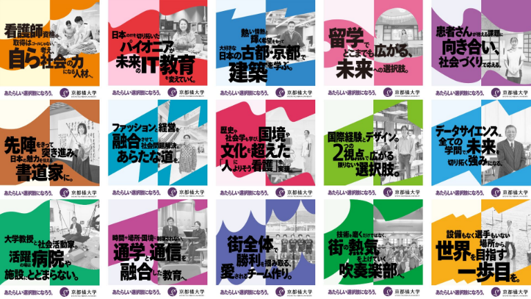 「予想外にいこう。」からの進化。京都橘大学にこれから起こる大改革を背負えるスケールにすべく、自分たちで提案したブランドタグラインの変更を提案。「あたらしい選択肢になろう。」を掲げてコミュニケーションをスタートしました。