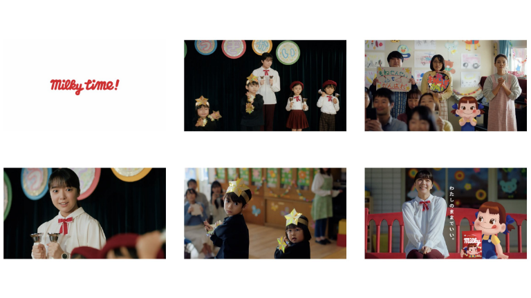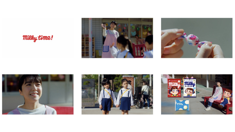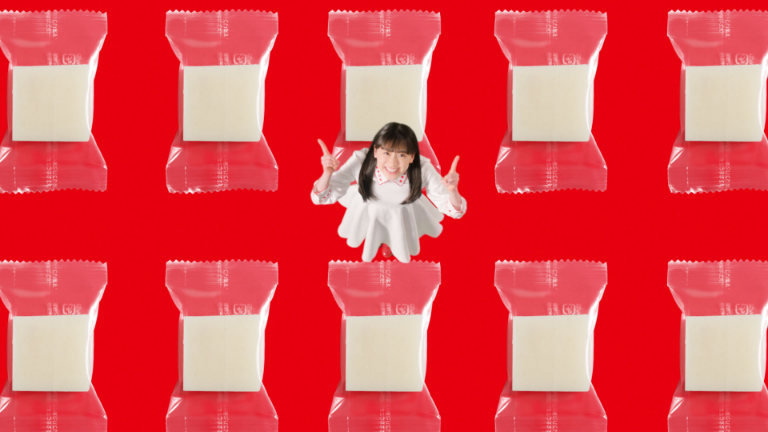 1951年の発売以来、ロングセラーとして愛され続けているミルキー。ママの味を再解釈し、原点に戻れるようなほっとする味と定義。自分らしく。等身大で、そのままで。「わたしのままでいい。」を新たなタグラインとし、あのサウンドロゴに乗せました。