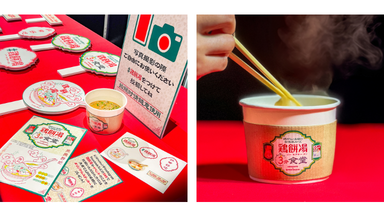 「サトウの切り餅シングルパックミニ」と「丸鶏がらスープ™」を用いた、台湾×タイパをテーマとして、レンチンするだけで“3分以内で完成”する台湾風餅入りスープ「鶏餅湯」を開発。試食イベント「鶏餅湯 3分食堂」を実施しました。